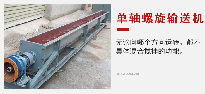 單軸螺旋輸送機(jī)無(wú)論向哪個(gè)方向運(yùn)轉(zhuǎn),都不具體混合攪拌的功能,當(dāng)物料放入進(jìn)料口時(shí),會(huì)自動(dòng)將物料轉(zhuǎn)動(dòng)到中間,混合到一起。