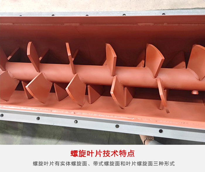 螺旋輸送機(jī)一般由輸送機(jī)本體、進(jìn)出料口及驅(qū)動裝置三大部分組成;螺旋輸送機(jī)的螺旋葉片有實體螺旋面、帶式螺旋面和葉片螺旋面三種形式,其中,葉片式螺旋面應(yīng)用相對較少,主要用于輸送粘度較大和可壓縮性物料,這種螺懸面型,在完成輸送作業(yè)過程中,同時具有并完成對物料的攪拌、混合等功能。