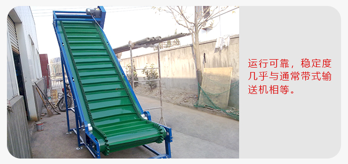 1.大傾角皮帶機(jī)的輸送傾角大,大可達(dá)90°,是大傾角輸送和垂直提升的理想設(shè)備。因此可以節(jié)約占地面積,節(jié)省設(shè)備投資和土建費(fèi)用,取得良好的綜合經(jīng)濟(jì)效益。例如,某用戶欲將煤炭提升到20m高的料倉(cāng)頂,如采用擋邊機(jī)以45°傾角輸送,則機(jī)長(zhǎng)僅需28.3m(水平機(jī)長(zhǎng)20m);而如果采用垂直輸送的擋邊機(jī),那么,水平機(jī)長(zhǎng)可以控制在6m以內(nèi)。
