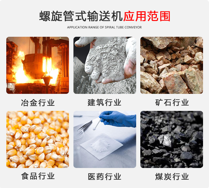 螺旋輸送機主要用于糧食、建材、冶金、化工、電力等行業對粉末、顆?;蛐K狀物料進行輸送任務,如水泥、混凝土、飼料、化肥、粉煤灰等物料,不宜輸送易變質的、粘性大的、塊度大的及易結塊的物料。