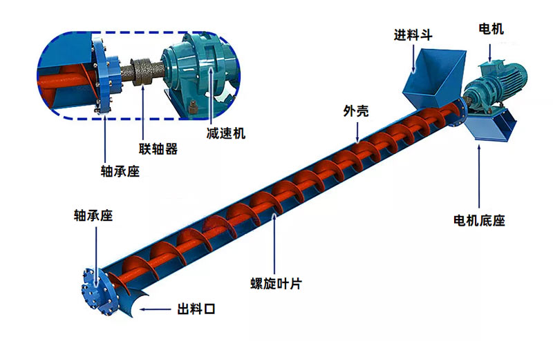 不銹鋼螺旋輸送機(jī):主要用于食品、糧食、化工等對(duì)輸送環(huán)境有要求的行業(yè),清潔度高,不會(huì)對(duì)物料產(chǎn)生污染。